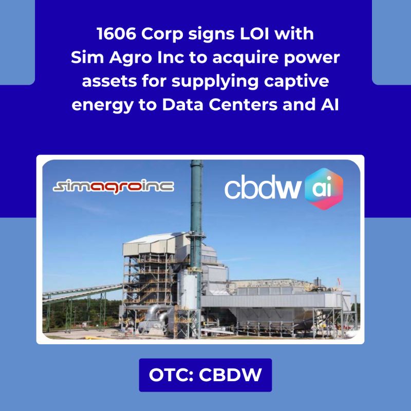 PHOENIX - Marylandian -- 1606 Corp. (Stock Symbol: CBDW) $CBDW is moving decisively to capitalize on one of the fastest-growing sectors in the global economy—AI-driven data infrastructure—through a bold, asset-backed expansion strategy centered in Texas.
