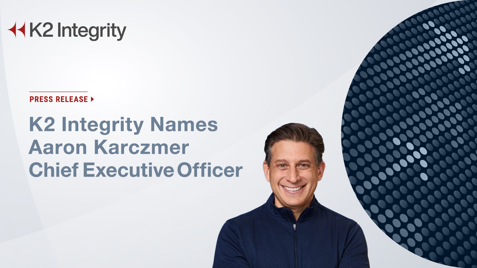 NEW YORK - Marylandian -- K2 Integrity, a global leader in risk management investigations and assurance services, today announced that Aaron Karczmer has been named Chief Executive Officer of the firm, effective immediately.