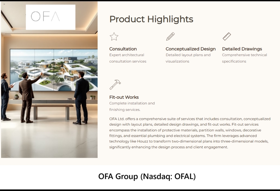 ROLLING HILLS ESTATES, Calif. - Marylandian -- OFA Group (N A S D A Q: OFAL), through its wholly owned subsidiary Office for Fine Architecture Limited, is redefining the future of architectural services and real estate development by seamlessly merging traditional design excellence with breakthrough AI-driven innovation. With multiple growth vectors — including a newly launched AI platform, strategic acquisitions, a $100M capital raise, and a pivot toward real estate backed by tangible assets — OFAL is positioning itself at the intersection of architecture, technology, and digital finance.